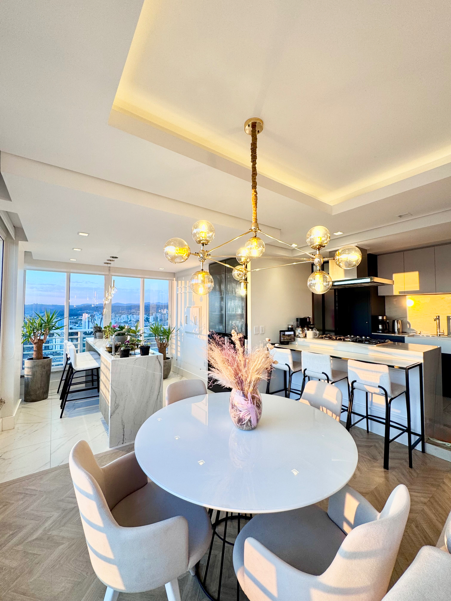 Um apartamento que vai te proporcionar inúmeras sensações boas, de aconchego, liberdade e harmonia. Você abre a portas, após um dia de trabalho e terá uma vista incrível para o pôr do sol. São 115m2 privativos, ambientes integrados, churrasqueira num espaço gourmet, cozinha super prática, sala de estar com cortinas elétricas, isso tudo para proporcionar a melhor convivência da família. Na área íntima, tem um corredor com rouparia, uma demi suíte para 2 dormitórios e a suíte principal moderna espaçosa e bem privativa.